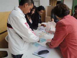 In den Wahllokalen, die ich besucht habe, treffe ich auf unterschiedliche Wahlkulturen, die von ruhi-gem, geordnetem Wählen bis zum bunten Treiben rund um die Urnen gehen. Die Unterschiede hängen vom Standort der Wahllokale ab, wie ich auch in Bogota vor vier Jahre beobachten konnte. Je margi-nalisierter der Standort des Wahllokals desto bunter das Treiben. Einerseits, weil das Wahlprozedere relativ kompliziert ist, denn es mussten für fünf verschiedene Gremien (Gouverneure, Gemeindepräsi-denten, Departements- und Gemeindeparlamente und Lokaljuntas) Stimmen abgegeben werden. Dies verwirrte viele Wählende, sodass sie Wahlhilfe brauchten, die aber meist nicht als neutral zu bezeich-nen ist. Andererseits werden dort Stimmen gefischt, wo viel Armut herrscht. Ein MOE-Vertreter mein-te: die einfachen Leute halten wenig von den PolitikerInnen. Das einzige Mal, wo sie von ihnen etwas bekommen, ist am Abstimmungssonntag – „ihrem“ Wahlfest und das nützen sie aus. Ab Montag gilt es dann, den courant normal für die nächsten vier Jahre zu ertragen: die Korruption und den Raub aus den Staatskassen.