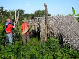Viel schlimmer allerdings waren die Androhungen, die an die Adresse der Bauern gingen. Täglich hörten wir entweder selbst oder wurden später informiert, wie sie den Bauern drohten, die Parzellen, die Hütten in ihren Parzellen, sowie die Erntevorräte zu zerstören. Ebenso zwangen sie zwei Bauern, ihre Kühe an einen anderen Ort zu bringen, indem sie ihnen sagten: „Deine Kühe sind nur noch heute hier“, was so viel heisst wie, entweder du bringst sie nun sofort weg oder wir stehlen oder töten sie. Dass dies keine leeren Versprechungen sind, wissen die Bauern, denn jede Woche gibt es Zerstörungen. Uns wurden diverse zerstörte Felder und Hütten von Bauern gezeigt, die erst vor kurzem Opfer solcher Aktionen geworden waren. Auch erzählte man uns von vergifteten Tieren.