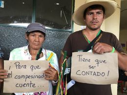 Ausgehend von der Mobilisierung 2013 hat die Mesa Campesina der Regierung vorgeschlagen, sie soll die Campesinos zählen, und wir fragten die Regierung ob sie wisse, wie viele Campesinos es gebe. Die Regierung kannte diese Zahl nicht, wollte die Campesinos aber auch nicht zählen, das sei nicht nötig. Unter dem Slogan „Para que el campesino cuente, hay que contarlo“, starteten wir eine Kampagne und reichten eine Grundrechtsklage (Tutela) ein, damit die Frage nach den Campesinos in der Agrarerhebung von 2014 aufgenommen werde. Die Kleinbauernbewegungen wollten eine Frage nach der Selbstdefinition (autoreconocimiento) in der Erhebung haben, aber die Regierung und auch der zuständige Richter für die Tutela sagten alle nein. Ein Argument ist, dass die Campesinos keine Ethnie sind. Klar, wir sind nicht vergleichbar mit Indigenen oder Afros, wir sind keine eigenständige Ethnie. Artikel 7 der Verfassung sagt aber, dass der Staat die ethnische und kulturelle Vielfalt anerkennen soll, und wir Campesinos sind eine eigene Kultur. Wir von der ACIT haben die Lage analysiert und gemerkt, dass sie in der Erhebung von 2014 keine Frage zu den Campesinos aufnehmen werden. Also führte die ACIT die Kampagne weiter, damit in der nächsten Ergebung von 2017 diese Frage aufgenommen wird.